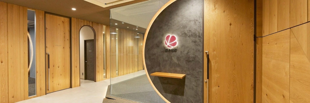 特徴的なのは、企業のブランドカラーを効果的に空間デザインに取り入れている点です。アクセントウォールや家具の色使いによって、企業のアイデンティティを視覚的に表現しながらも、落ち着いて仕事に集中できる環境を両立させています。