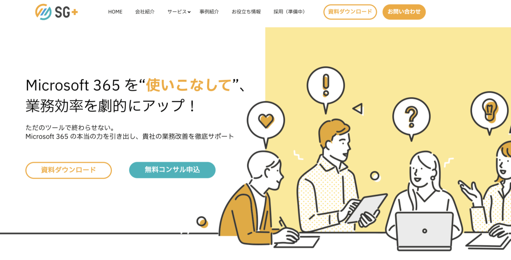 SGプラス株式会社は、Microsoft 365を中核に、企業の業務改革を“設計→実装→定着”まで一貫支援するトータルサポート企業です。