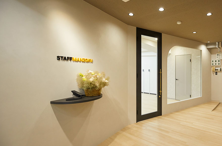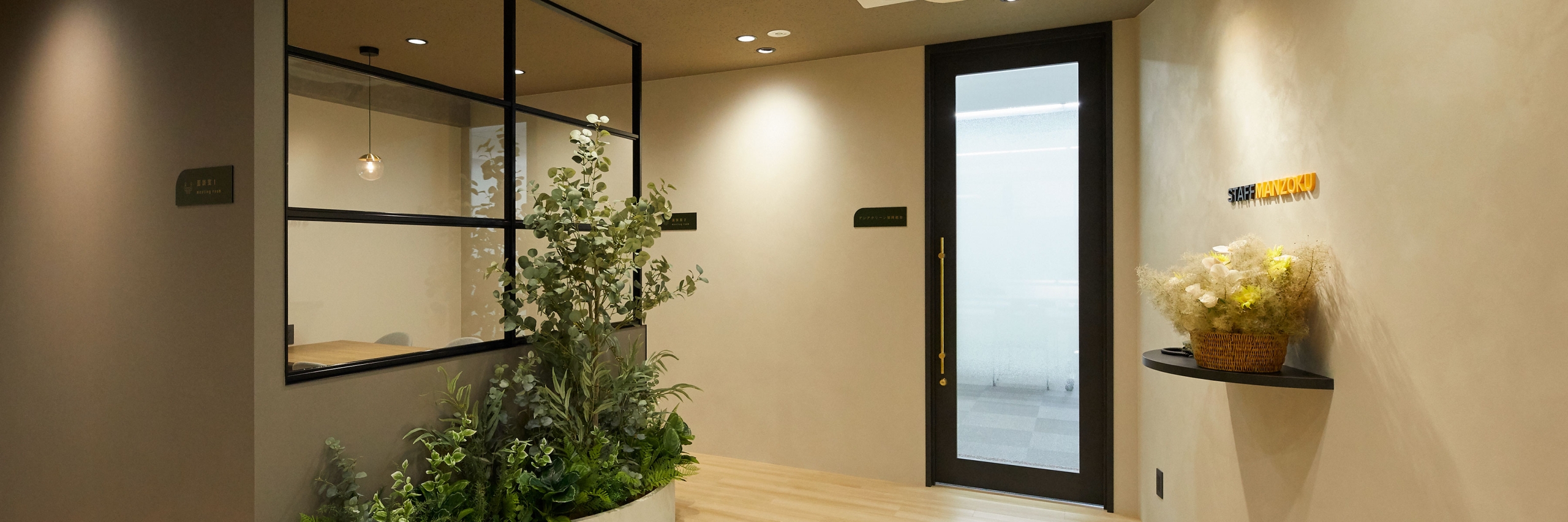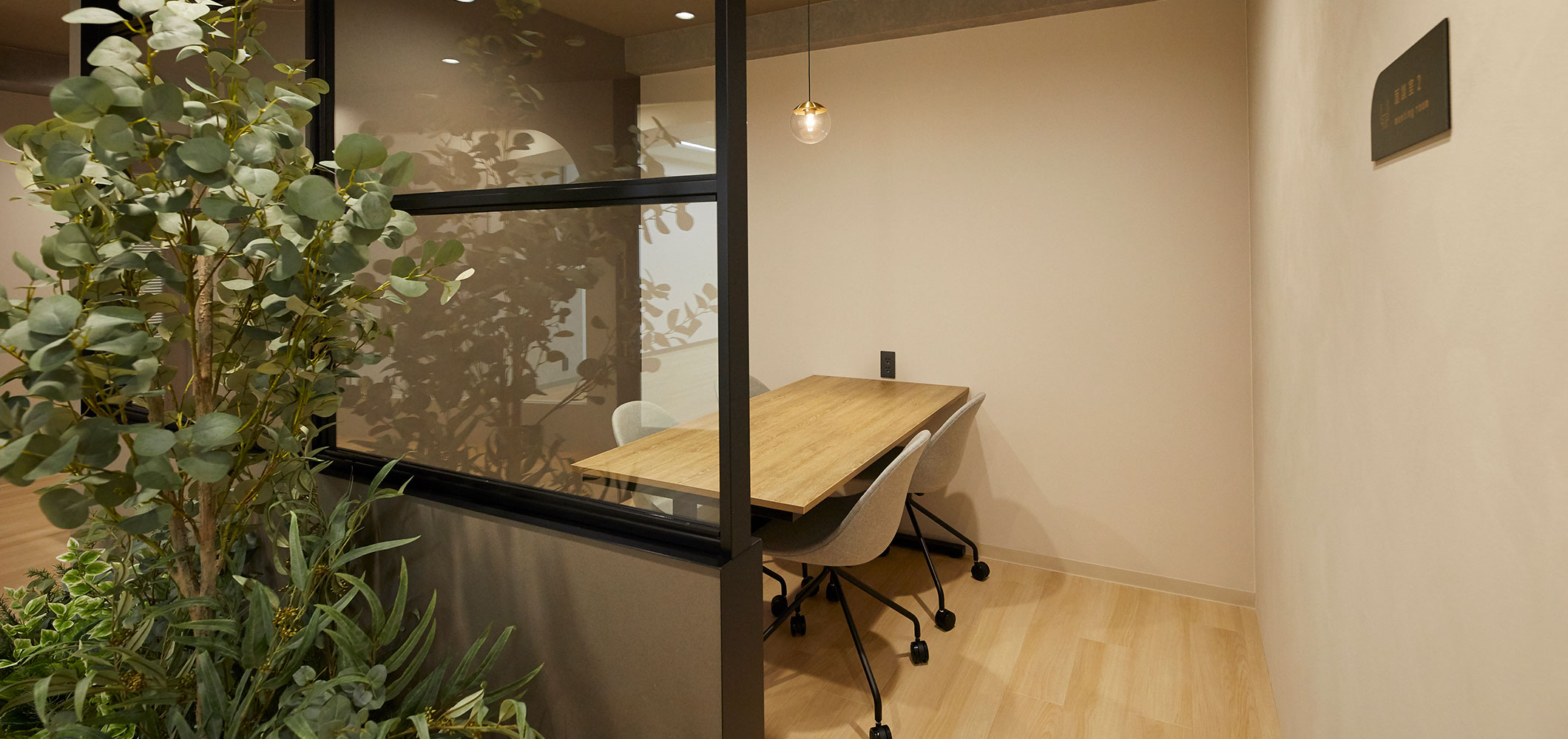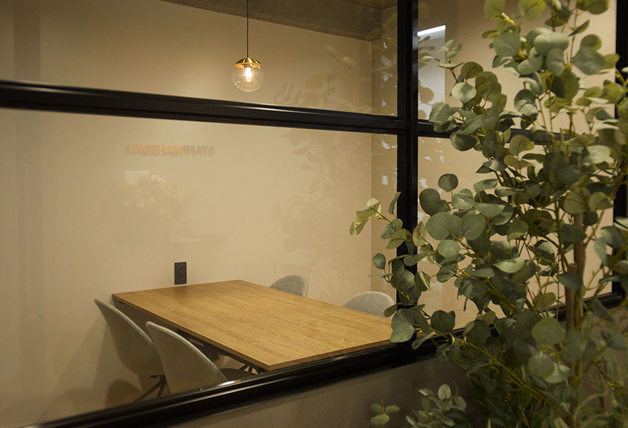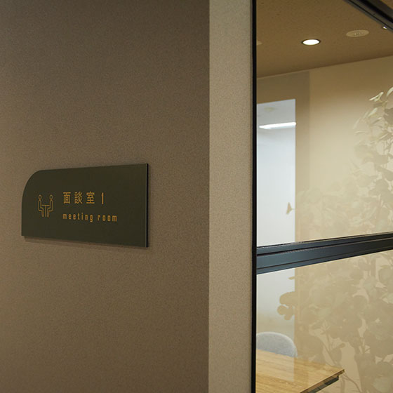 エントランスの一角には、面談の為のミーティングスペースを2ヶ所設けています。