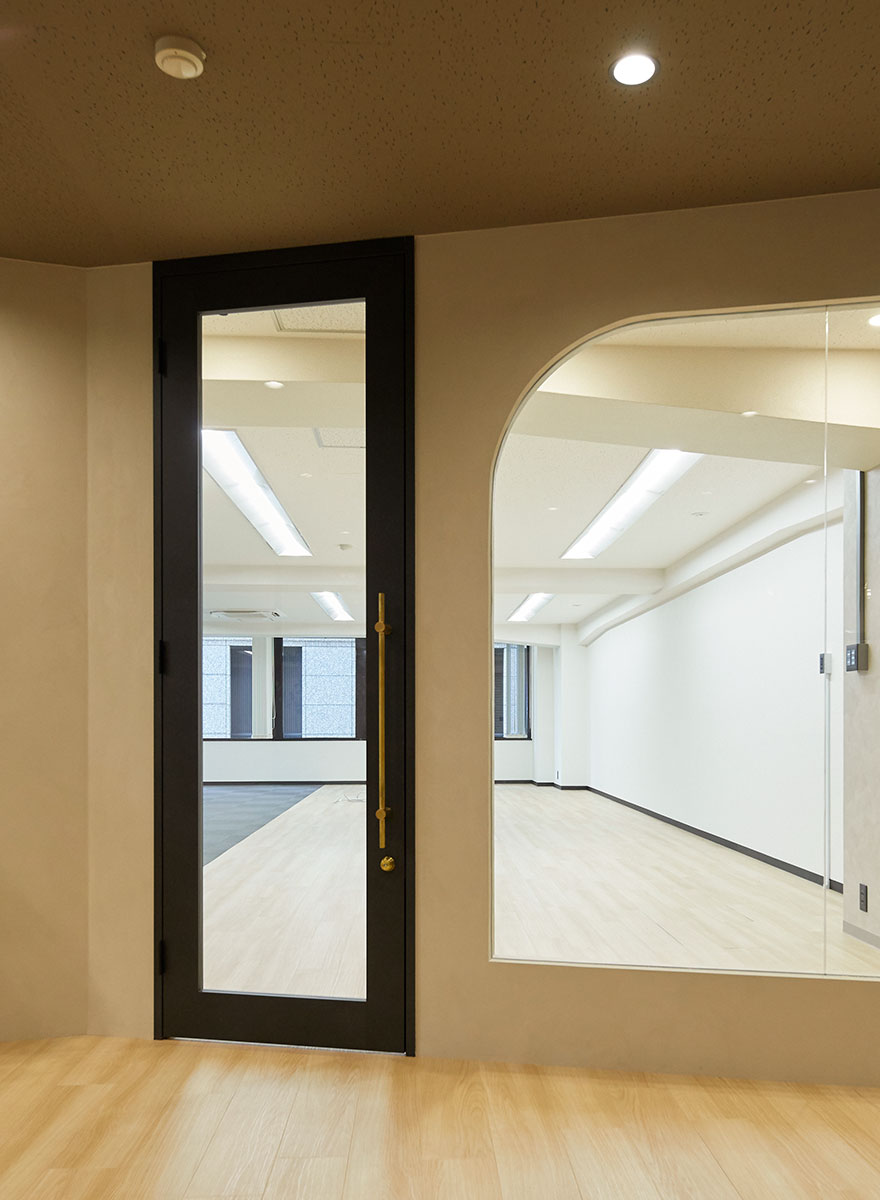 ミーティングスペース・エントランスにいながらも、ガラス越しにその向こうの空間が感じられ、視線の先には何層にも奥行きが生まれます。