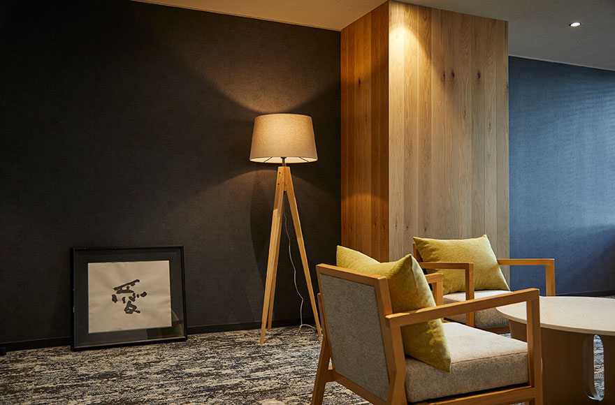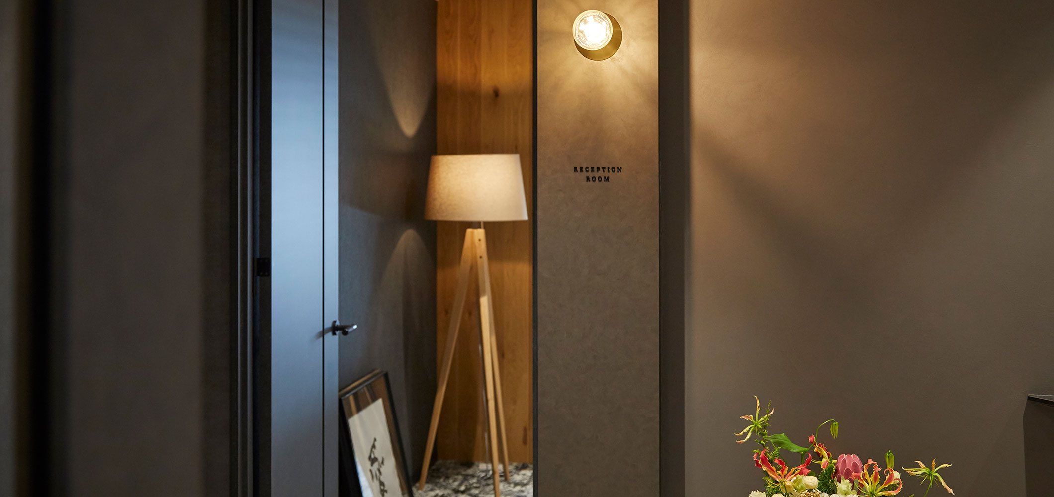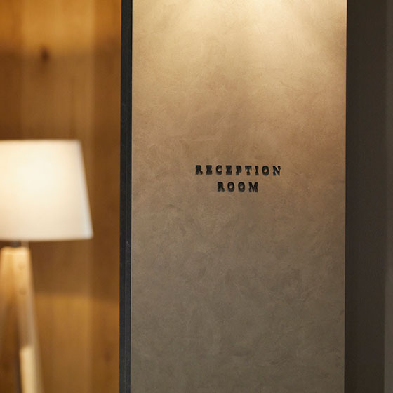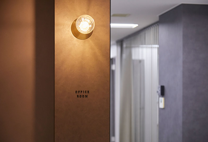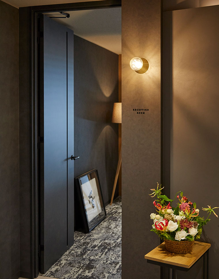 また、シンプルな室名サインやブラケットライトもポイントで際立って感じられます。