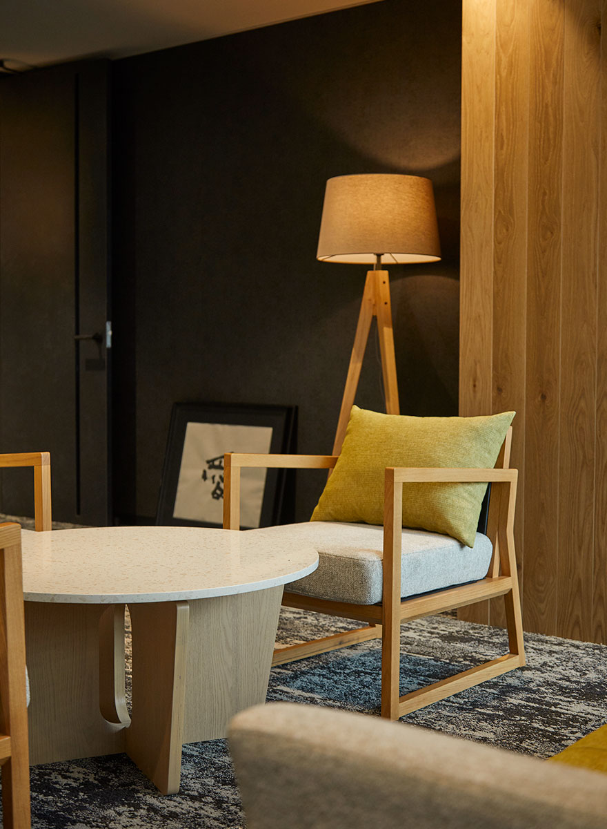 それに対して、エントランスの奥にある応接室は、色味を加えて柔らかい雰囲気づくりをしています。